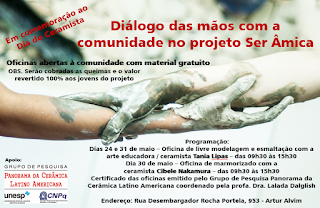 Primeira oficina em comemoração a Semana do Ceramista com Tania Lipaspor Projeto Ser Amicamaio 25, 2018 Deixe um comentário Cancelar respostaO seu endereço de e-mail não será publicado. Campos obrigatórios são marcados com *Nome * E-mail * Site Comentário * Salvar meus dados neste navegador para a próxima vez que eu comentar.