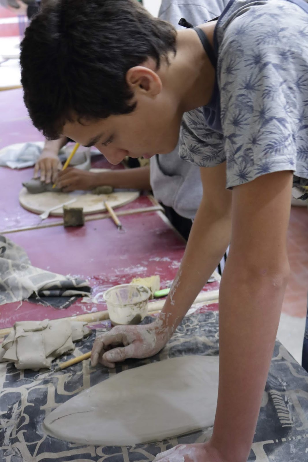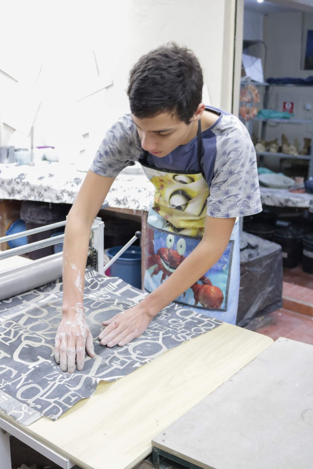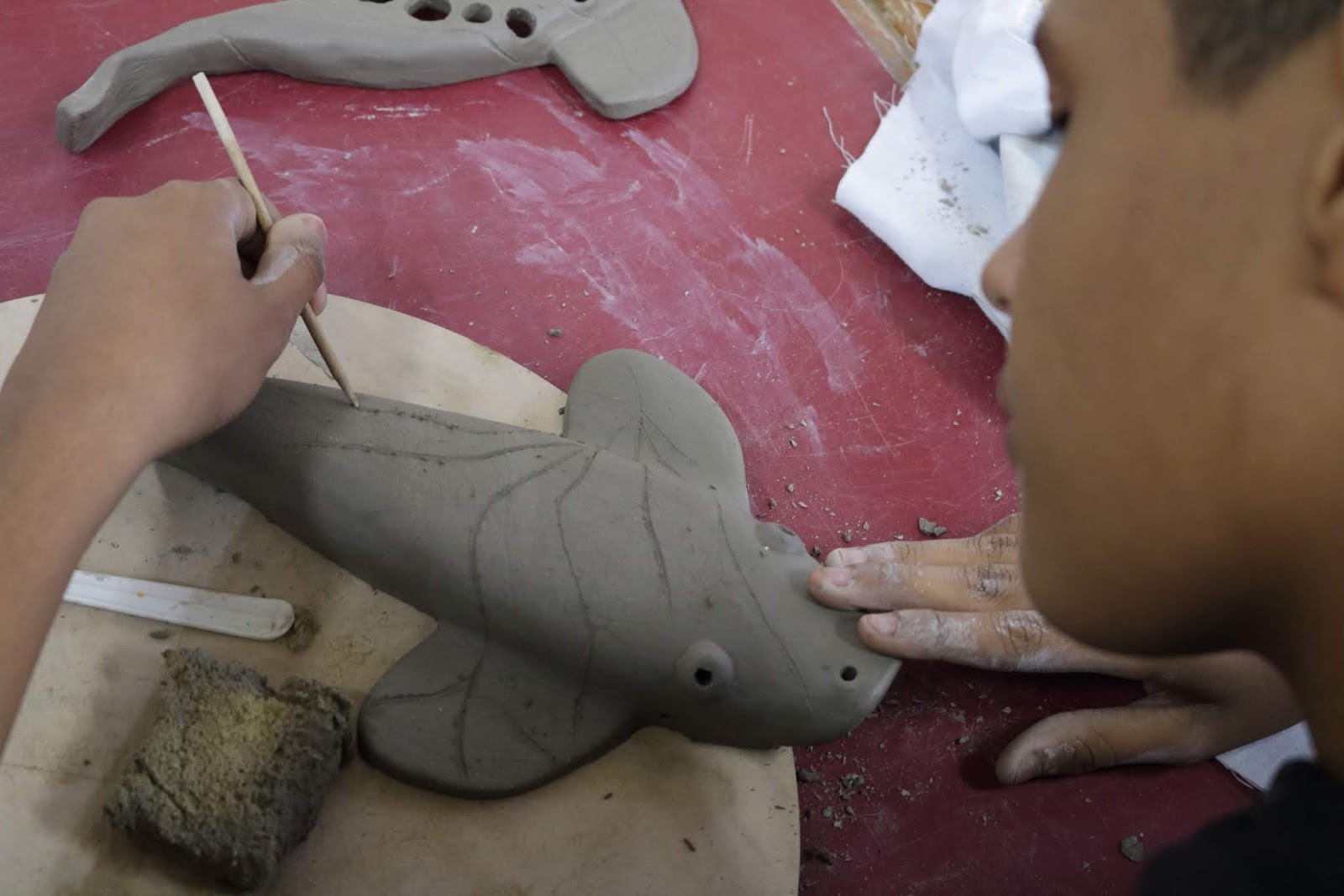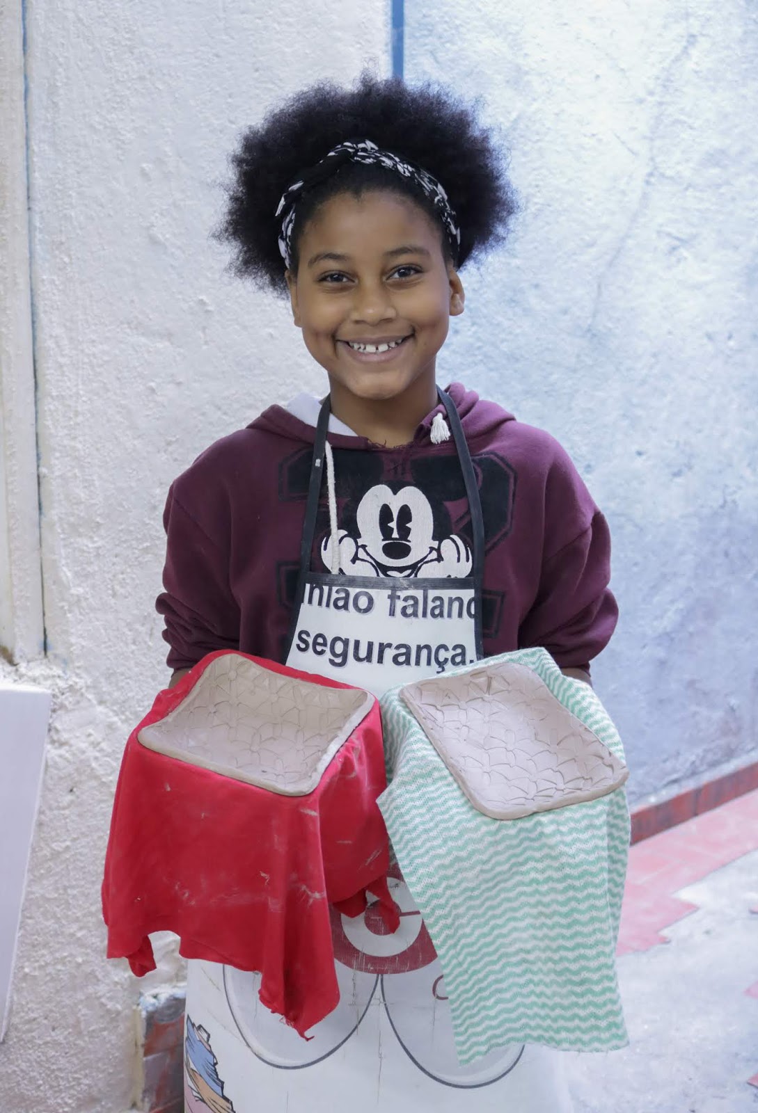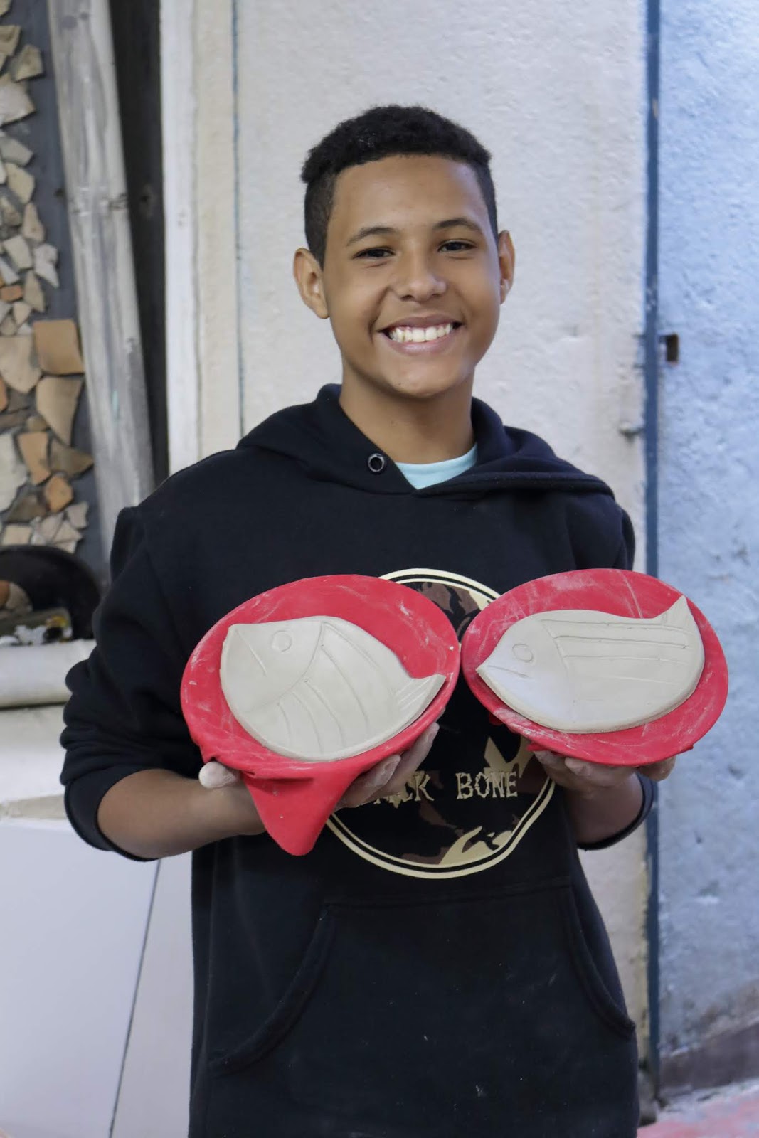 Marcelo em seu primeiro dia de aula e contato com o barro.