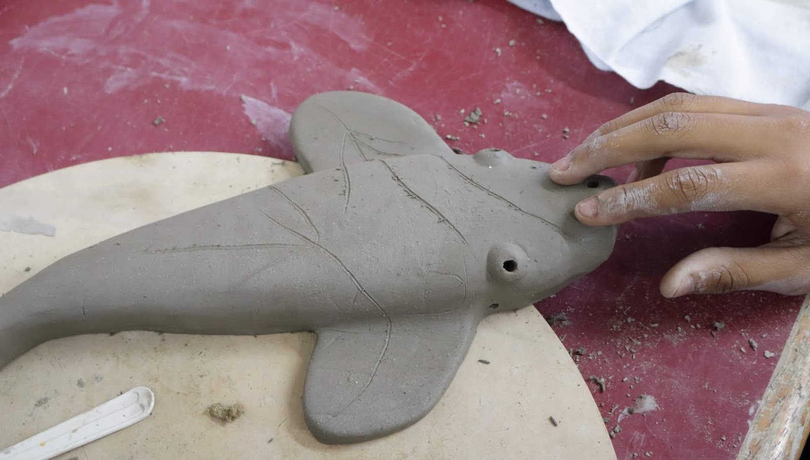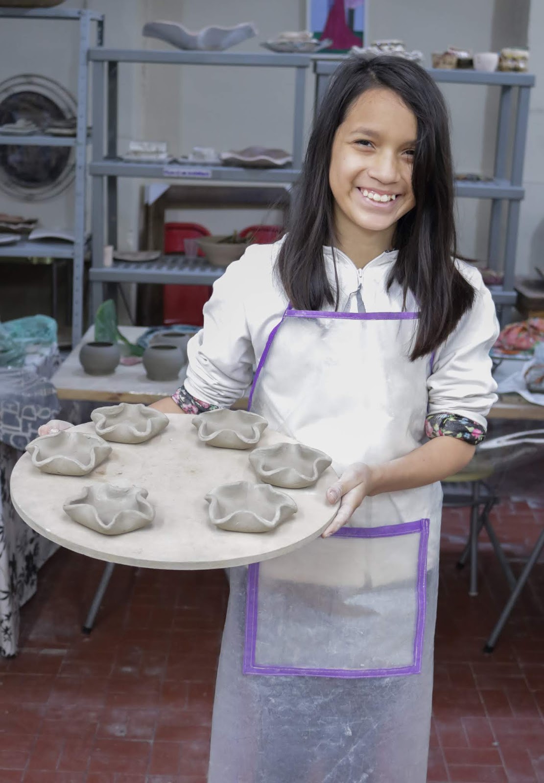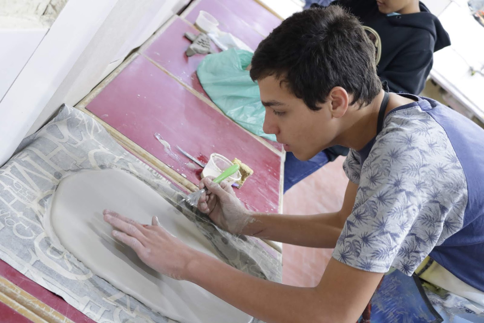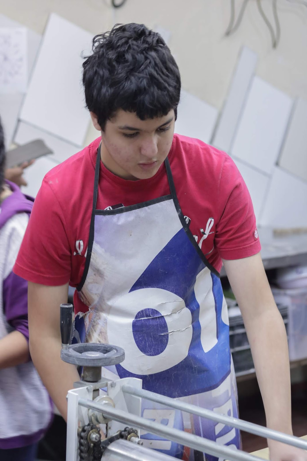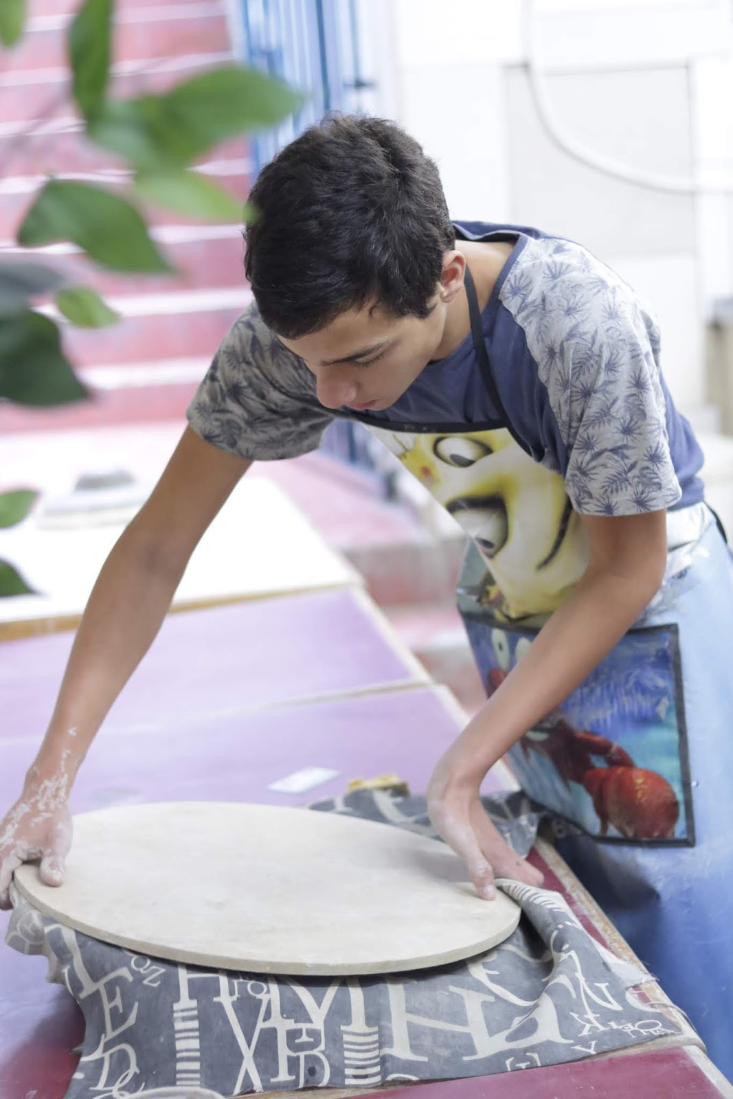 Marcelo em seu primeiro dia de aula e contato com o barro.