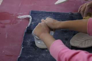 Marcelo em seu primeiro dia de aula e contato com o barro.